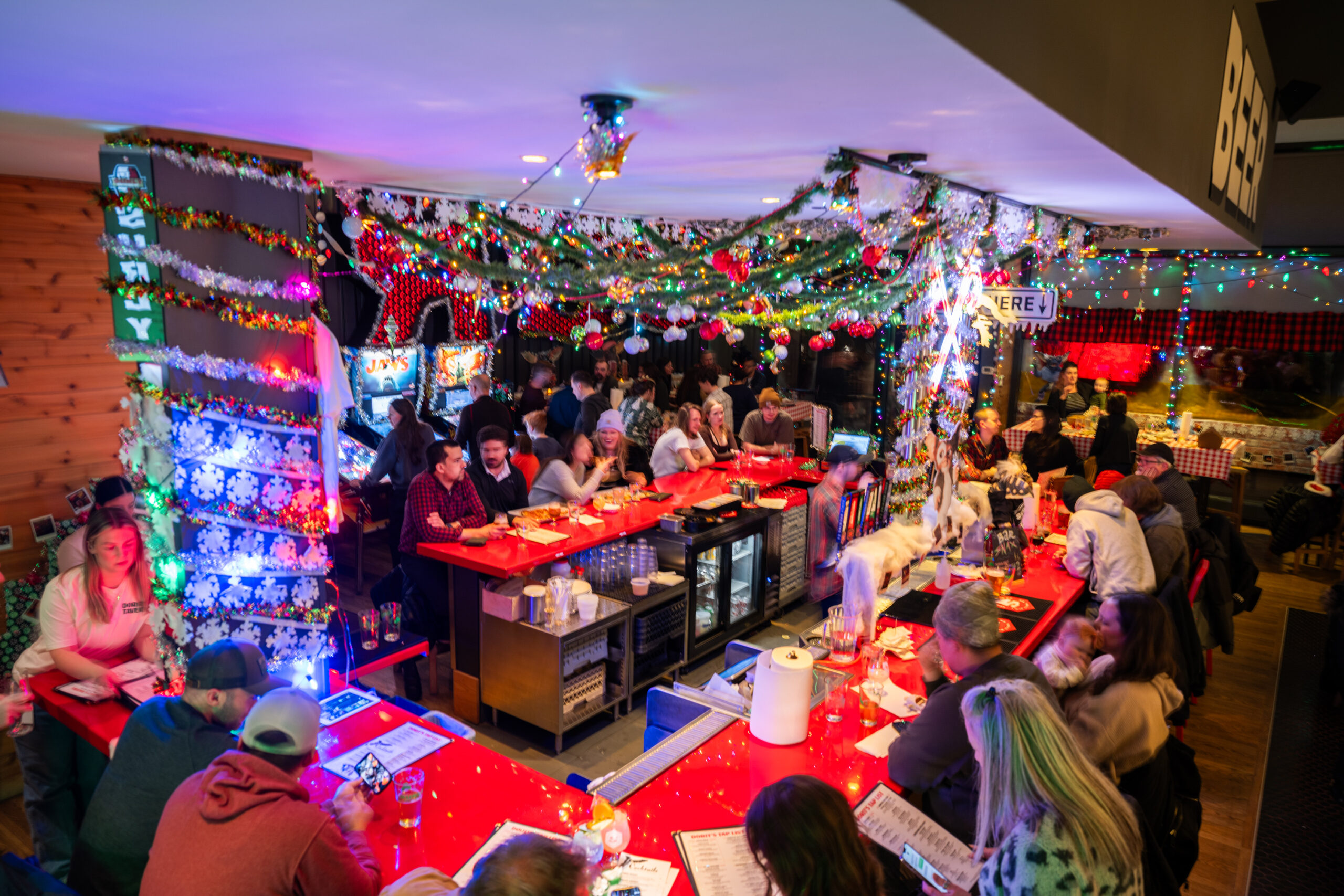 A holiday pop-up for people who don’t necessarily like holiday pop-ups, Dorit’s proudly wears its tacky ‘80s aesthetic on the sleeve of its hideous sweater—from the gaudy tinsel to the pickle roll-ups, from the plastic ashtrays to the neon-colored drinks.