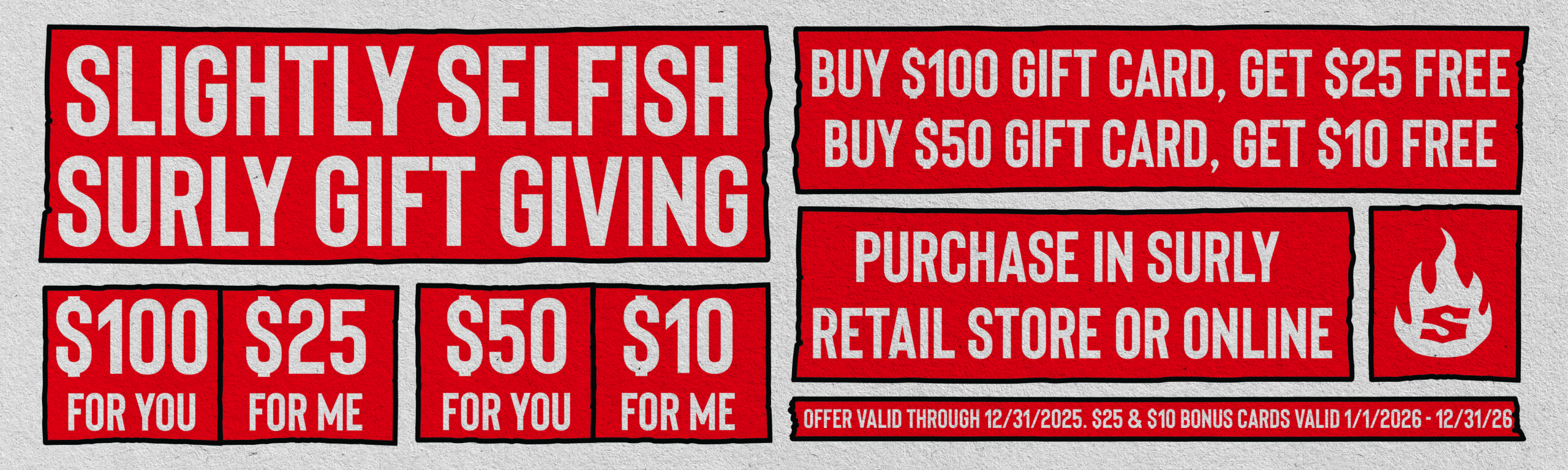 In addition, our Have Yourself a Merry Little Rebate program runs through 12/31/25--buy two Surly 12-packs*, get $10 back via Venmo. Buy two sixers, get $6 back. Spend it on stocking stuffers, egg nog, whatever. Link to redeem in our bio!