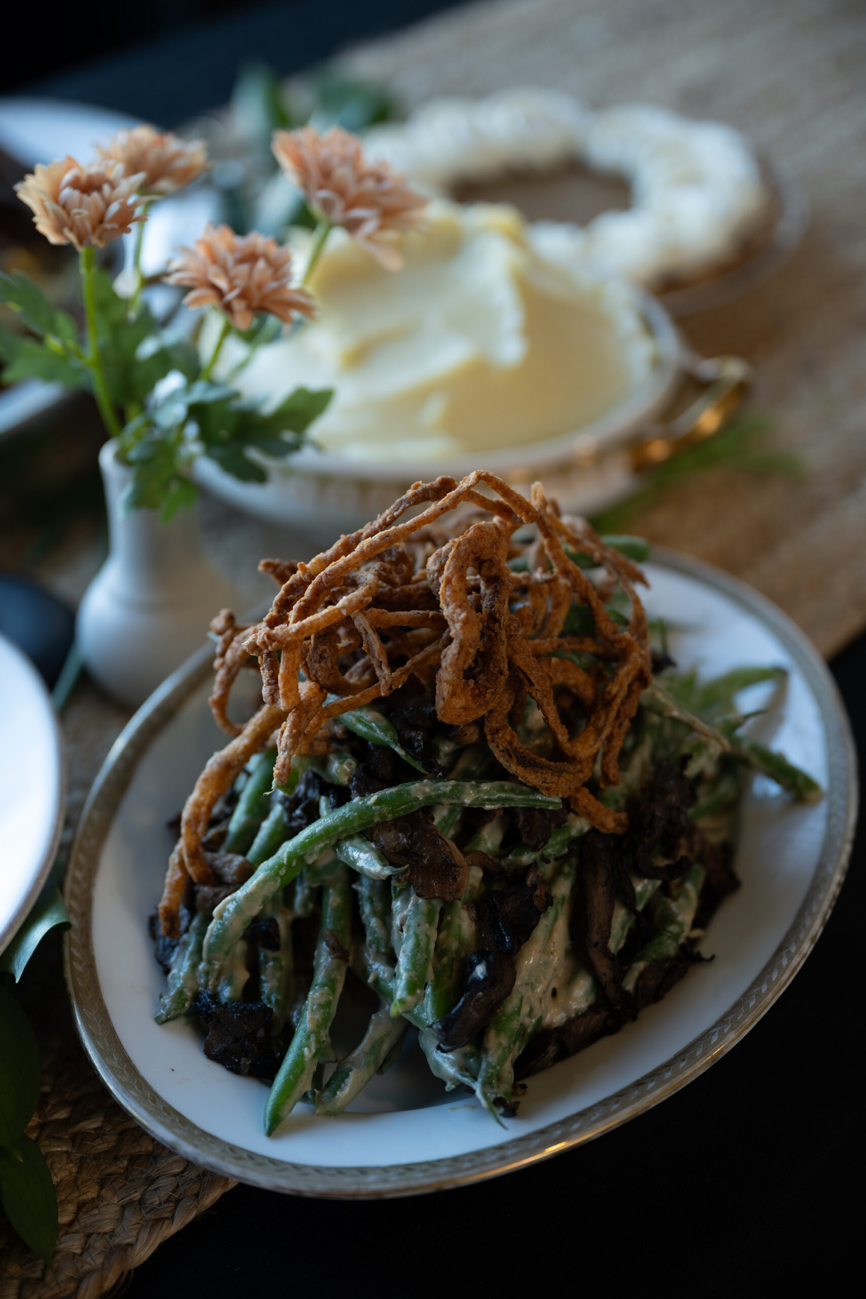 If you`re assembling a Thanksgiving meal kit in our part of the world, you must include green been casserole as a side. It`s non-negotiable. Making it actually taste good is where you separate yourself from the pack. Surly`s meal kit uses smoked mushroom cream and crispy fried onions to elevate this humble side to must-have heights.