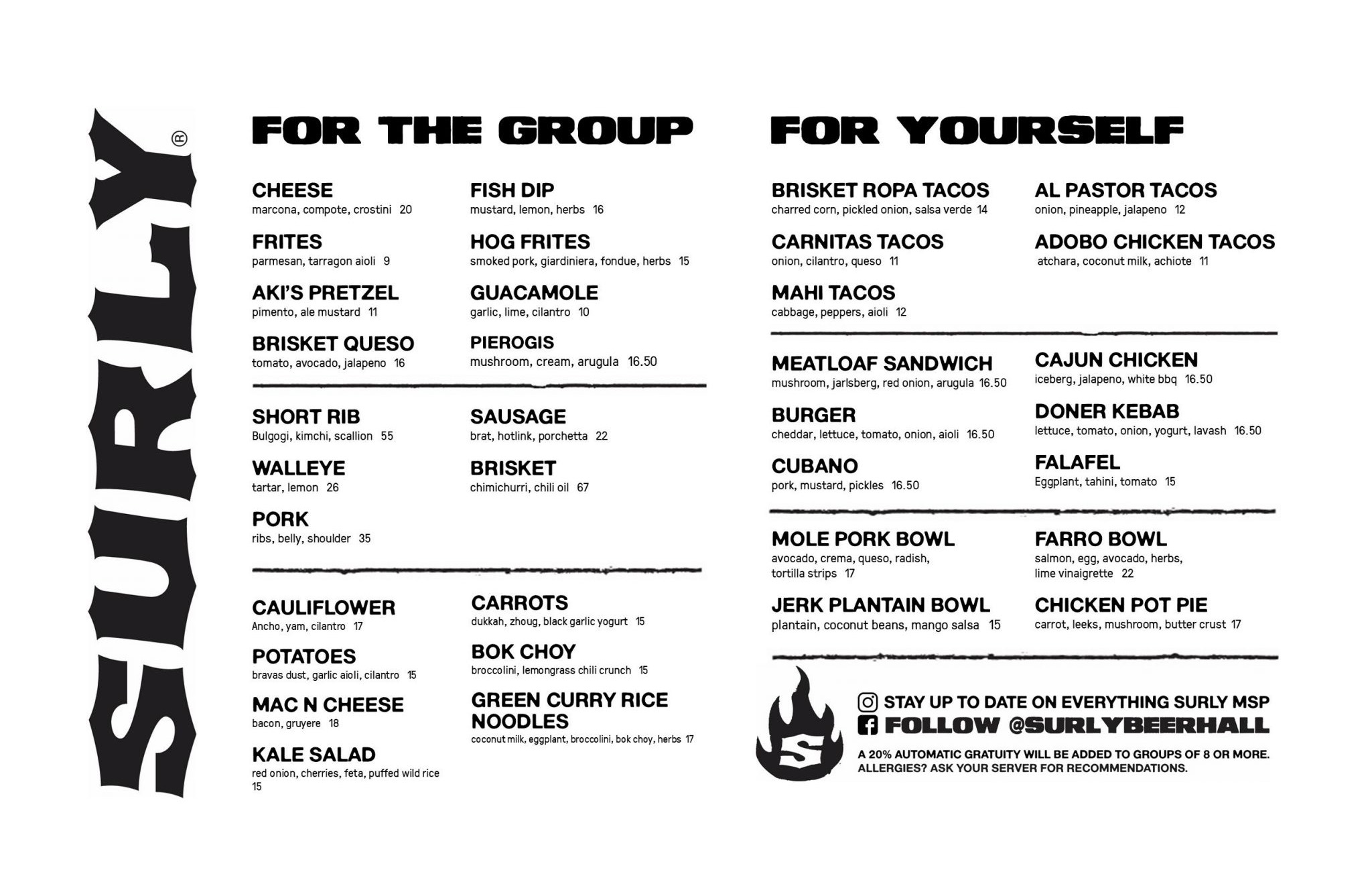There are great breweries and there are great restaurants. Rarely do you find both at the same time. What sets Surly apart is a full kitchen with food equal to our award-winning beers. With an innovative, crowd-pleasing menu in the Beer Hall and a New Haven-style pizzeria upstairs, here’s the thing you need to know: People who don’t drink beer come here just to eat the food. That’s like going to a museum when you don’t like art, but it’s a damn fine compliment, and our kitchen team earns it every day.
