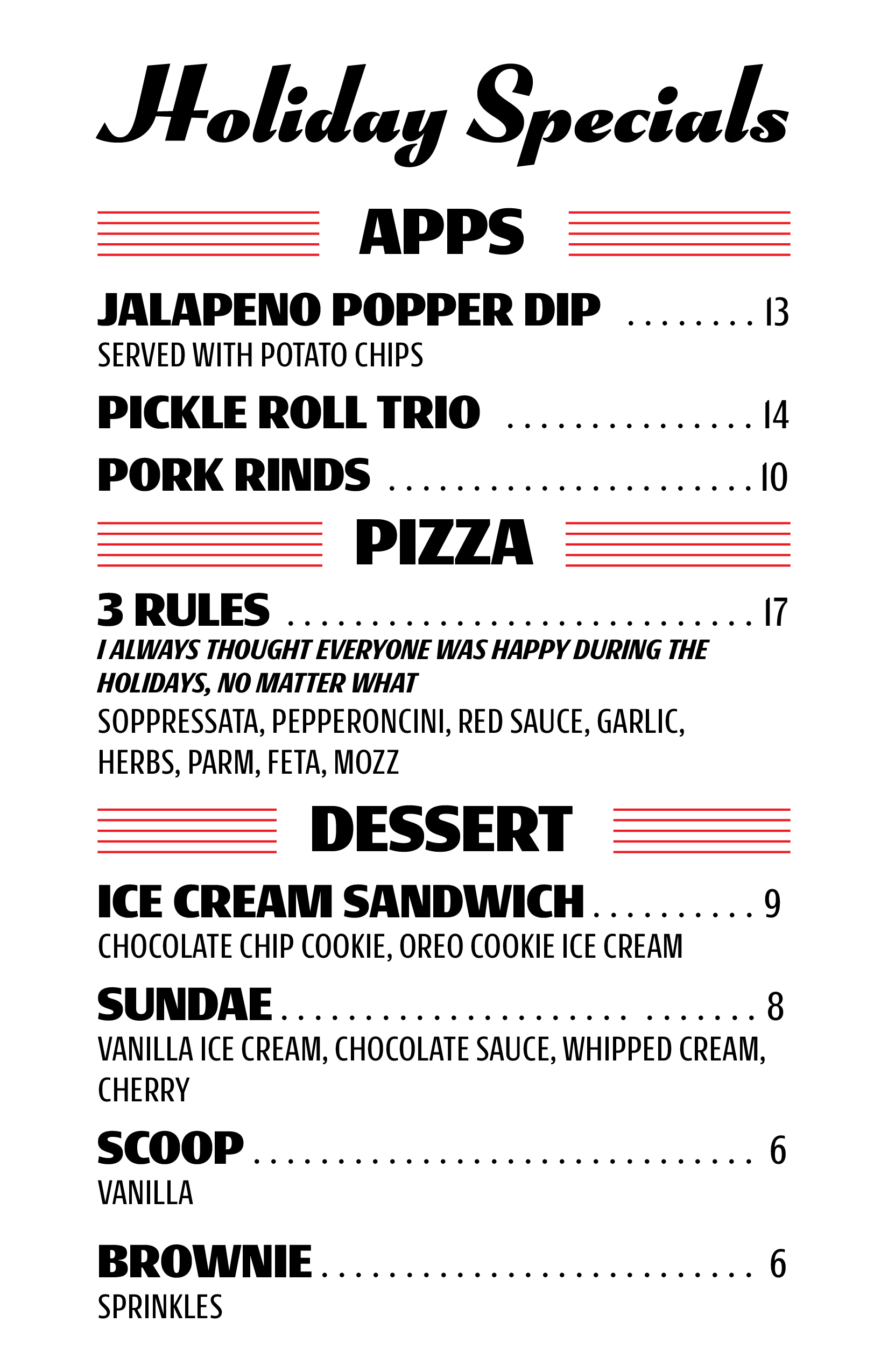 From specialty pies to build-your-own to a plain delicious cheese pizza, there’s no shortage of options. Order it up here, enjoy it anywhere in the brewery.