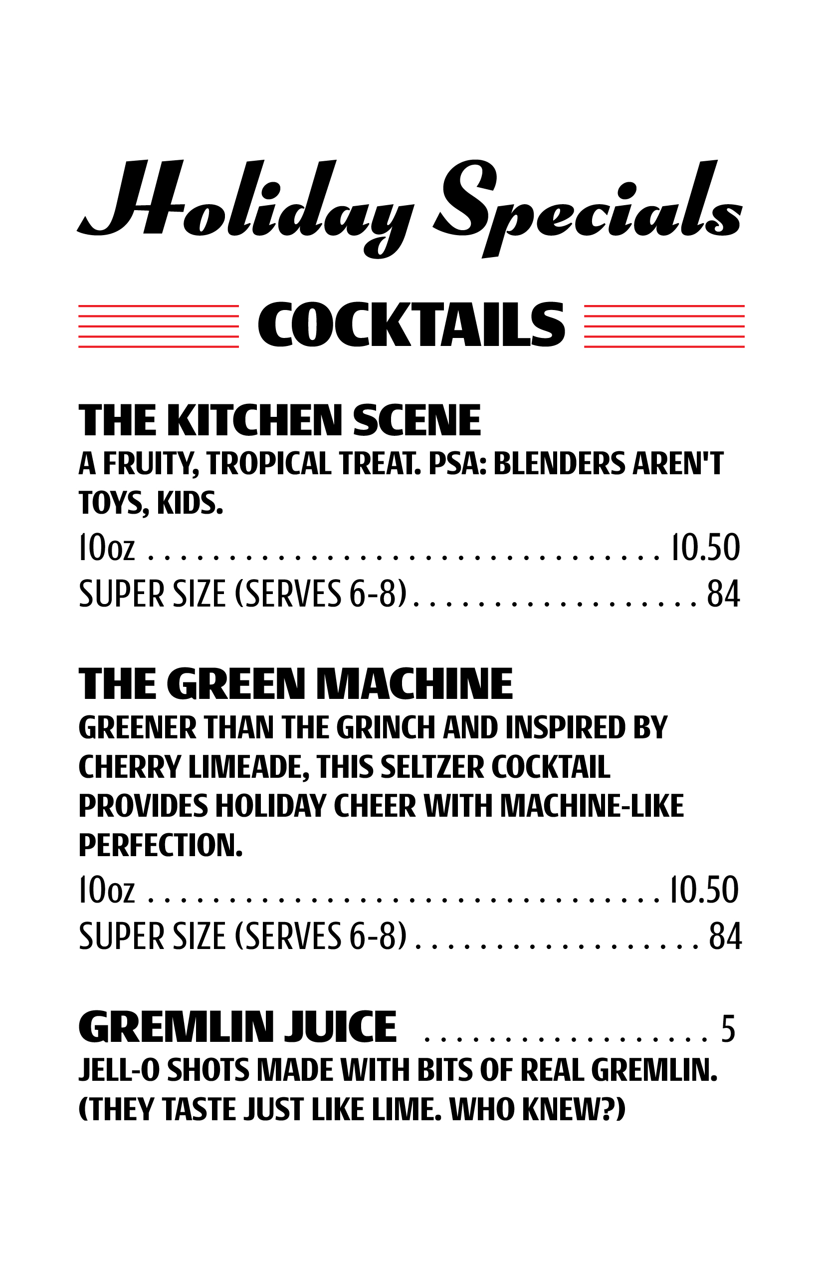 A holiday pop-up for people who don’t necessarily like holiday pop-ups, Dorit’s proudly wears its tacky ‘80s aesthetic on the sleeve of its hideous sweater—from the gaudy tinsel to the pickle roll-ups, from the plastic ashtrays to the neon-colored drinks.
