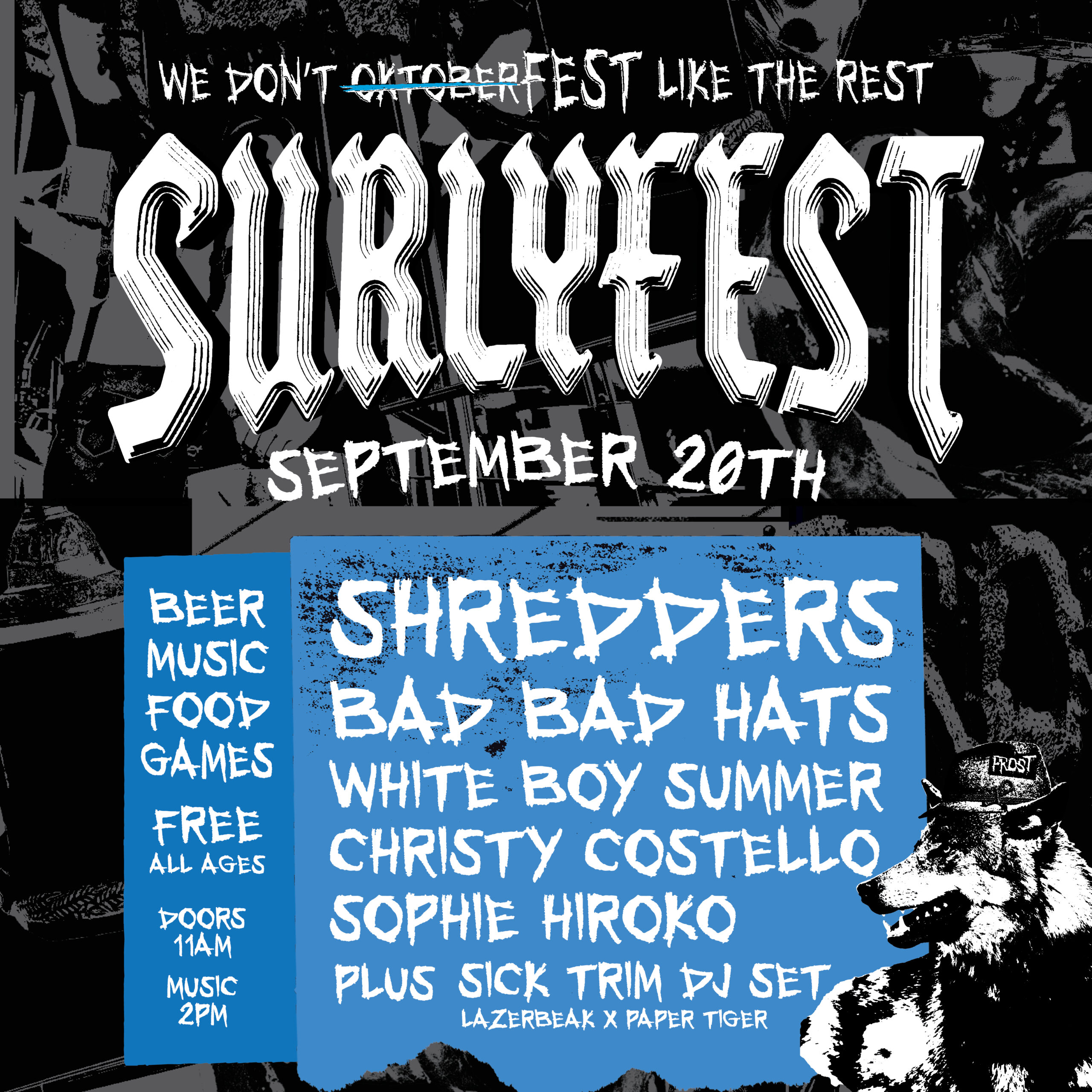 And on Saturday, September 20th, enjoy a free full day of live music in the Beer Garden, curated by Lazerbeak and featuring Shredders, Bad Bad Hats, White Boy Summer, Christy Costello, Sophie Hiroko, and a DJ set from Sick Trim (Lazerbeak x Paper Tiger)! We’ll also have fest-themed games and competitions that require very little in the way of athleticism.